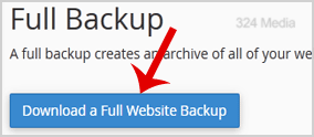 3. Under Full Backup, Click on Download a Full Website Backup button.