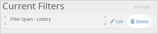 4. Under Current Filters, You can see all of your existing filters, Click on Delete next to the appropriate one.